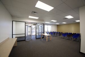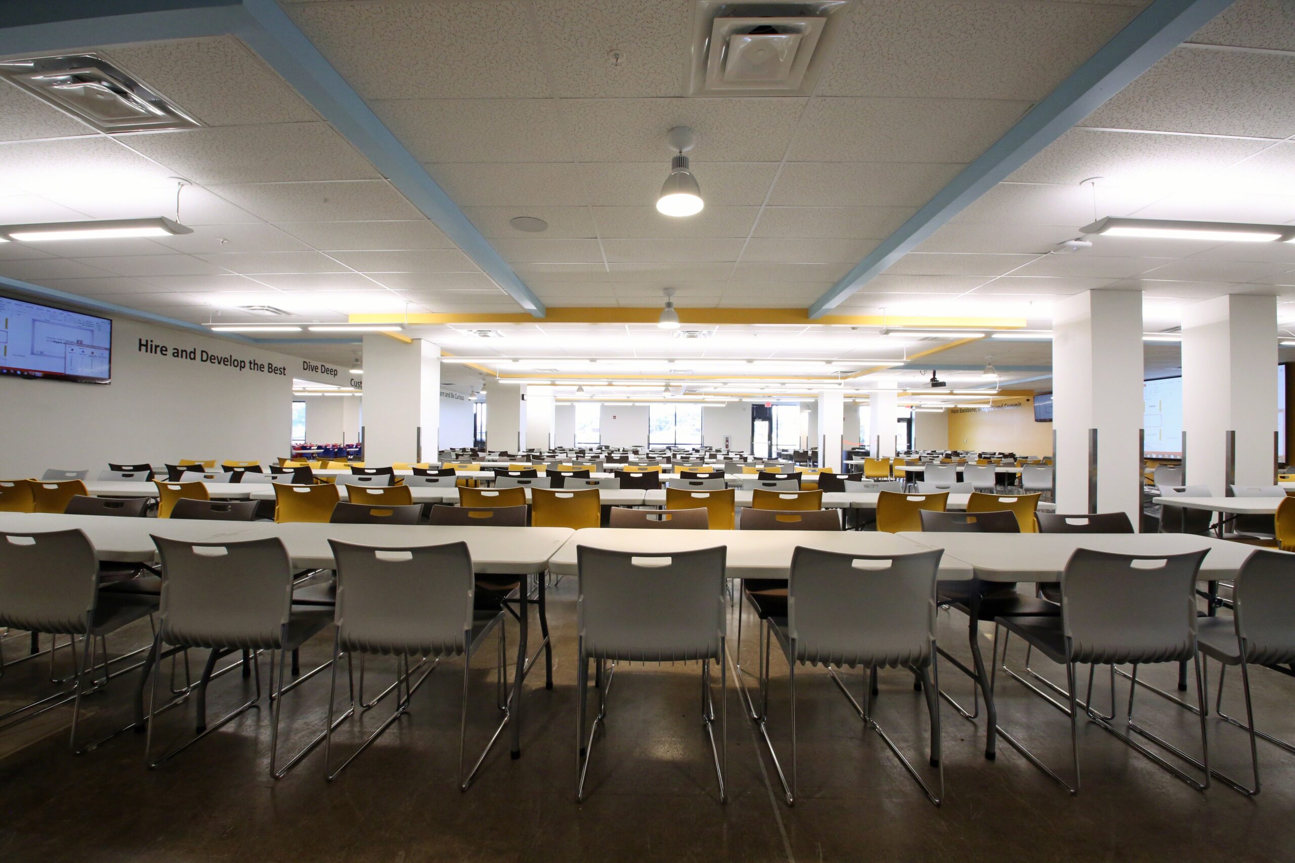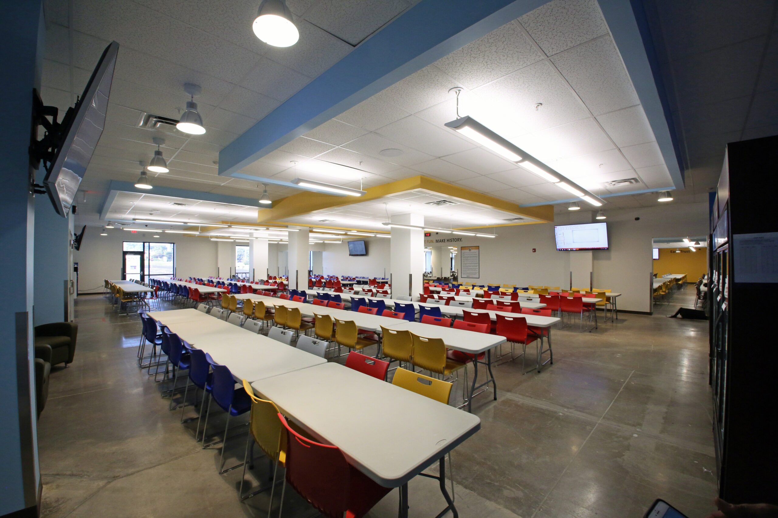 This comprehensive, multi-phased facility modernization and expansion project encompasses a complete interior and exterior overhaul, beginning with the full demolition of all tenant spaces to make way for extensive new improvements, including the construction of new offices, a classroom, main and seasonal breakrooms, new and remodeled restrooms, new locker rooms, new AmCare, new HR, conference rooms, and a new SMX area, alongside upgrades to the trucker’s lounge/entrance. Critical warehouse improvements include the installation of 138 new column footings for a new pack mezzanine, a facility-wide new power distribution system for the new conveyor system and flat sorter, re-lamping of high bay lighting, a new fire alarm system, an upgrade to the radio repeater and LP vision system, and standardization of all dock equipment and door hardware; these infrastructure changes are supplemented by the addition of a life safety generator and a full sign package. The final phase involves significant exterior enhancements, including painting the entire building exterior, resealing and restriping parking lots, adding pickup and drop-off shelters at both entrances, and upgrading the main entrance, guardhouse, and monument sign, as well as installing a new smokers shelter.
